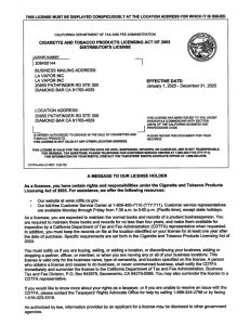 • CDTFA Tobacco License Lookup (https://www.cdtfa.ca.gov/)