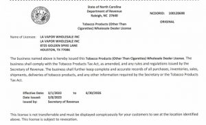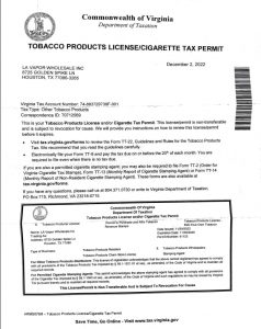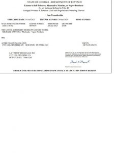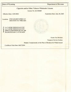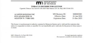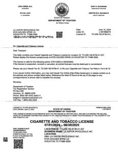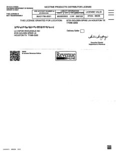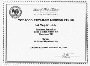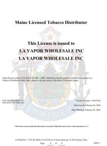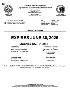 We operate in full compliance with U.S. law and strictly adhere to all regulations regarding the sale of tobacco and nicotine-containing products. Below are our valid licenses and registration details.